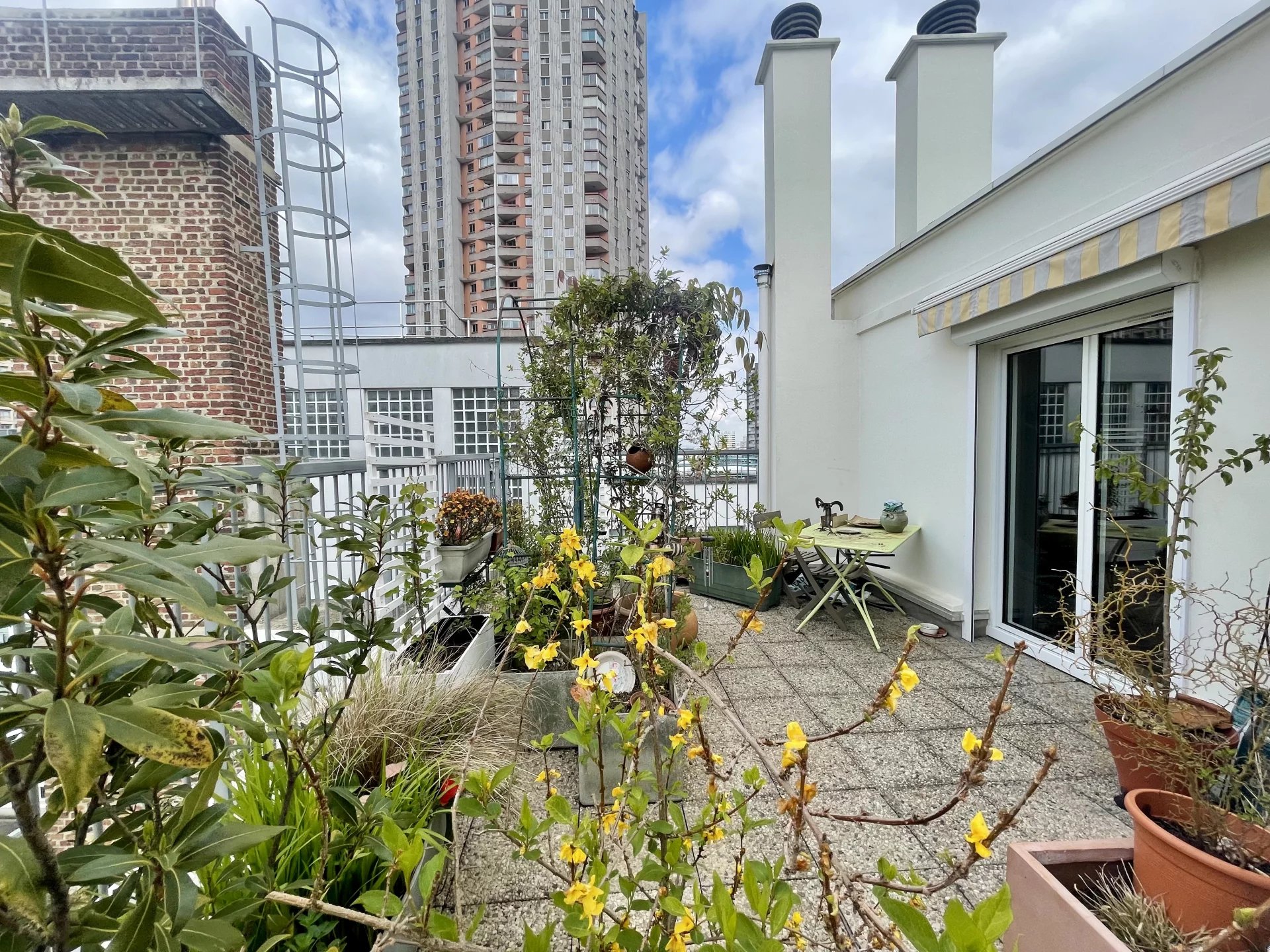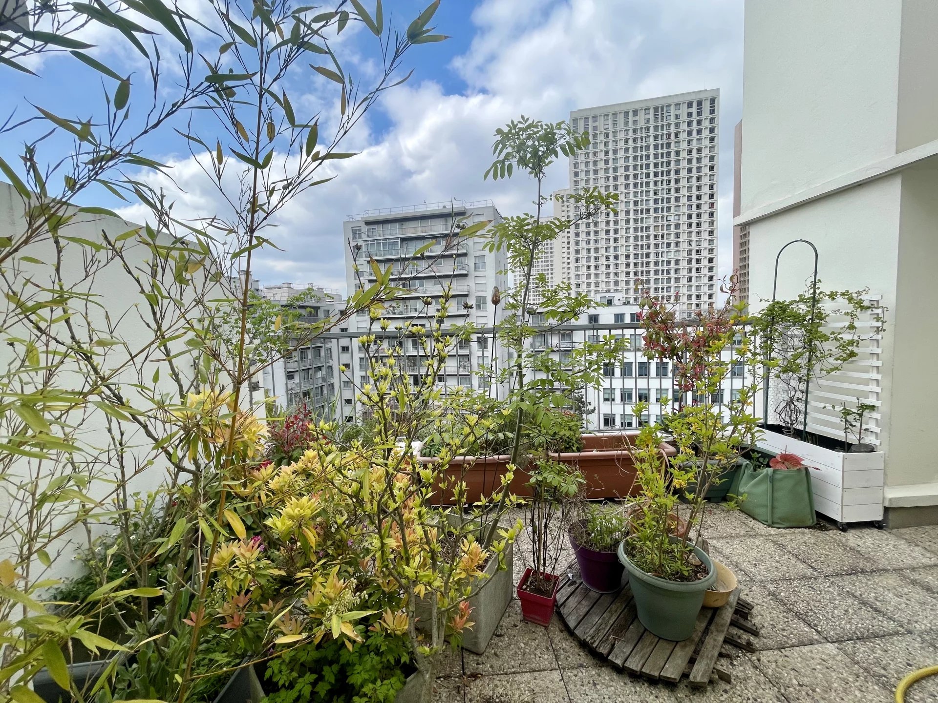 Cet appartement est composé d’une entrée, un séjour, une cuisine, une chambre, une salle de bain et un WC séparé, avec un grand balcon avec vue sur le Panthéon et une grande terrasse de plus de 36 m² avec vue dégagée, parquet au sol. Accès privatif par l'ascenseur.