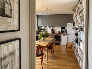 - d’une salle à manger lumineuse avec cuisine ouverte,