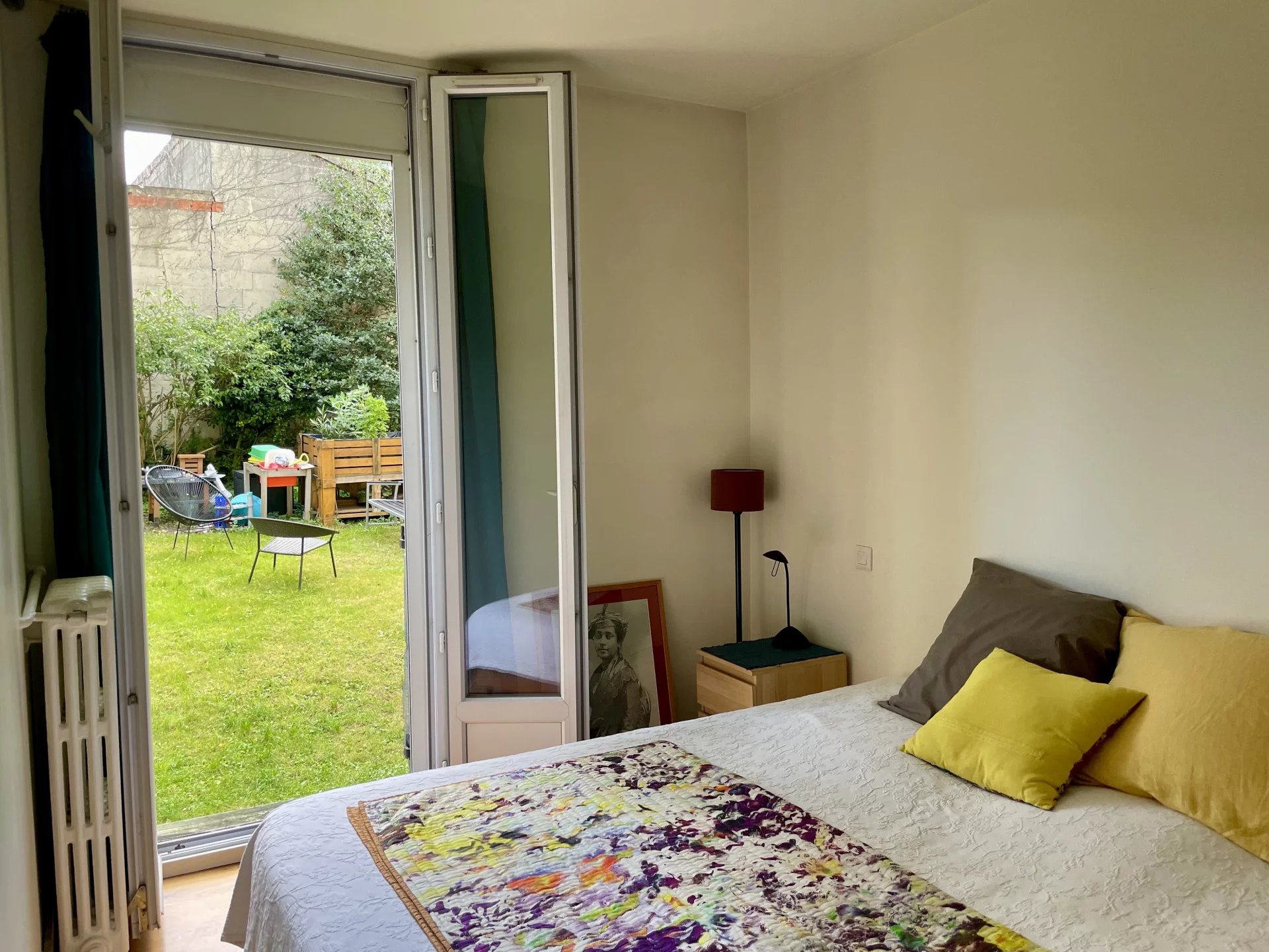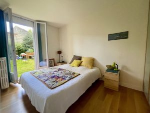 Au sein d'une résidence avec un accès sécurisé, au calme avec un grand jardin partagé, un bel appartement de 3 pièces de 52 m² avec cave et place de stationnement, comprenant : une entrée, une cuisine, un séjour, un bureau/chambre, une salle de bain, un WC séparé et la chambre principale avec un accès direct au jardin partagé à l'arrière de la copropriété.