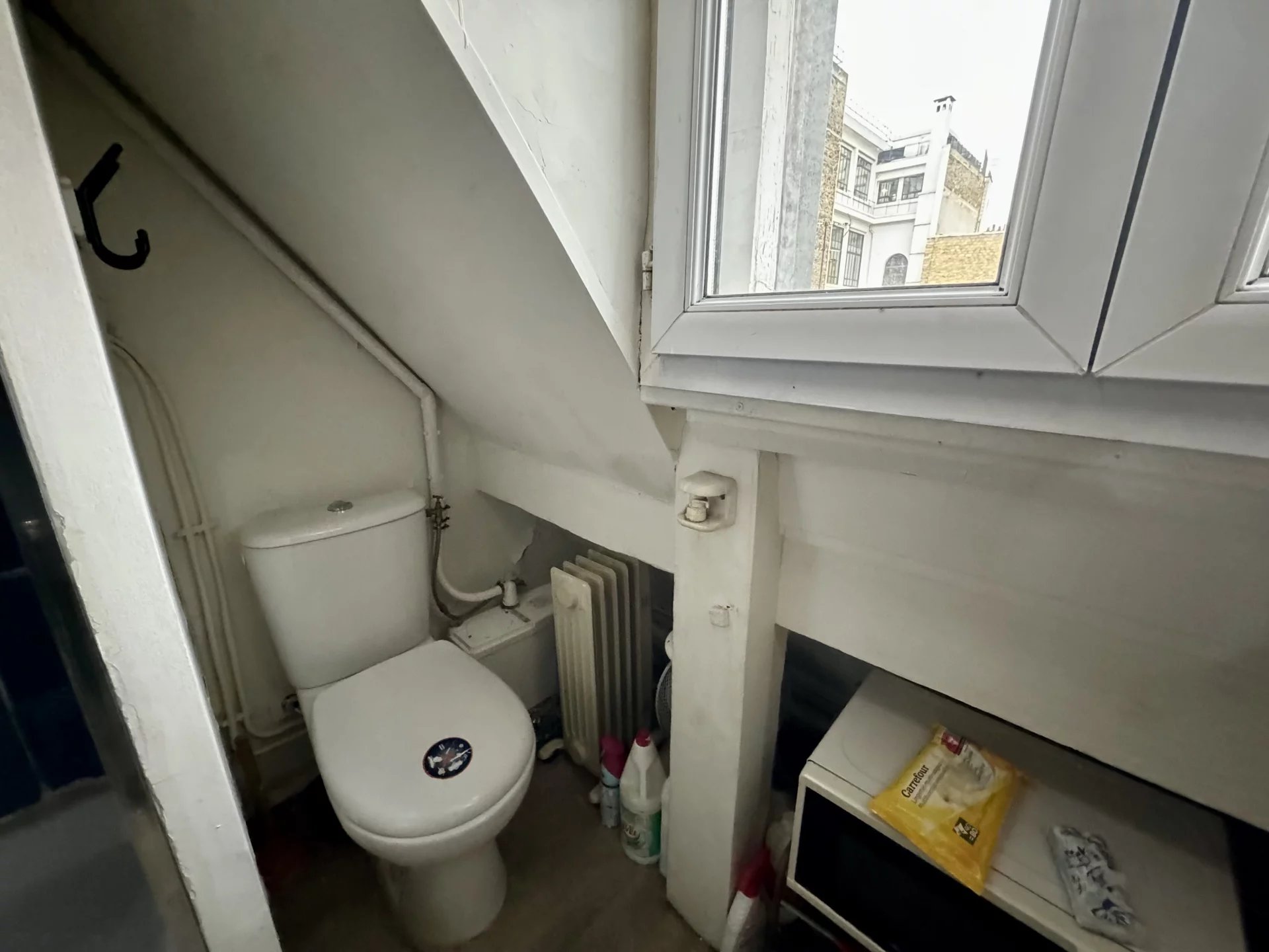 Dans un immeuble Pierre de Taille, au 6ème et dernier étage, une chambre de service d'environ 10m2 au sol avec lavabo, douche et WC sanibroyeur. Vous avez également la jouissance de 2 WC sur le palier.